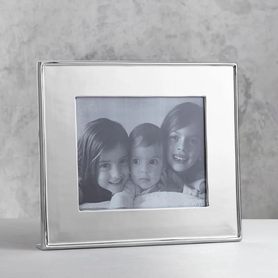 A stunning statement. The Jason silver frame of polished metal enhances your favorite 8x10 horizontal photo, and looks brilliant when displayed on the mantle, desk, or shelf. The footed, self-standing frame makes a fine wedding gift--or for any special occasion--and is an elegant solution whenever a silver frame is called for. Sandcast and hand polished, the frame is made of an FDA safe, easy-care 93% aluminum alloy