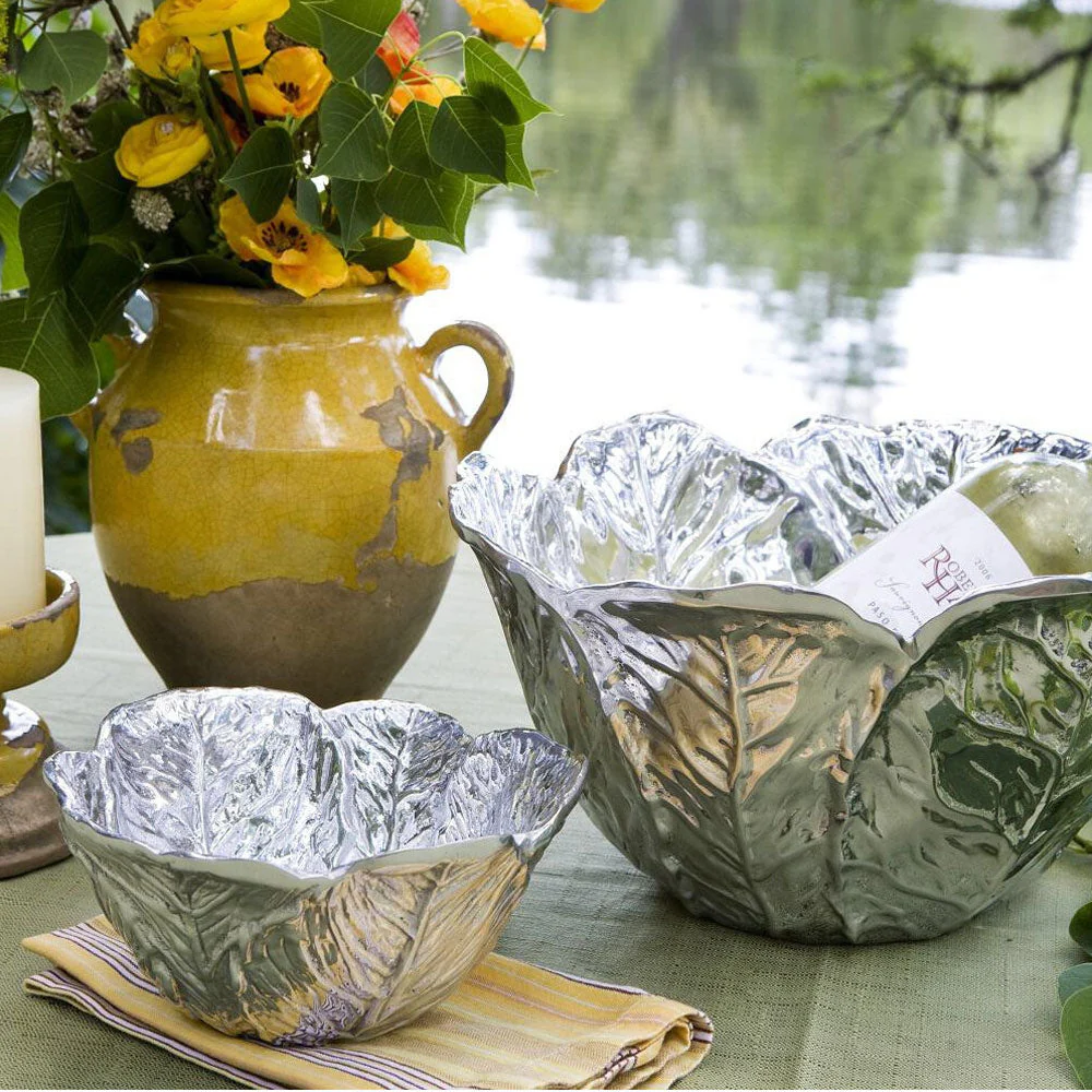 The Beatriz Ball GARDEN Cabbage large decorative silver bowl has deeply veined overlapping leaves, and is the perfect size for entertaining.