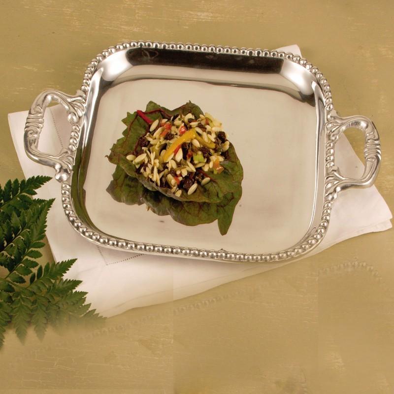 Beatriz Ball is full of lustrous designs in alternative metal. Pieces are individually crafted and easy to care for. They go from refrigerator, to oven, to table, and are perfectly suited for todays casual lifestyles. Beatriz Ball is made of an FDA safe, easy-care 93% aluminum alloy. Ideal to chill foods, or warm up to 325 degrees. In a world of mass production, handmade is the true luxury. Never tarnishes, easy care. Handwash, no dishwasher. Do not store food, or leave in standing water. Avoid cutting on surface.