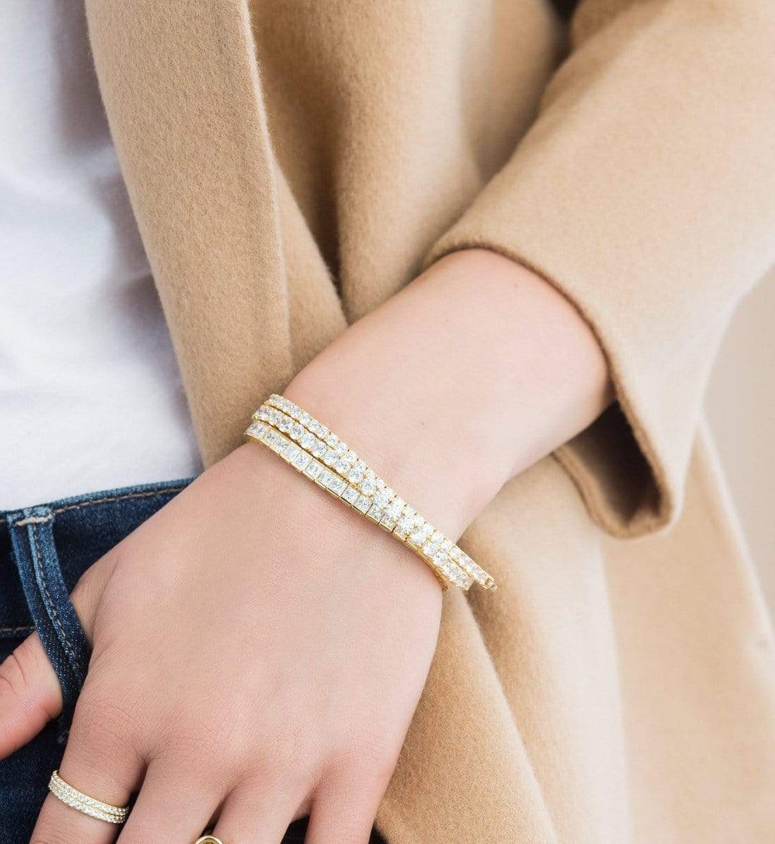CRISLU Classic Large Brilliant Tennis Bracelet Finished in 18KT Gold - Size 7.5