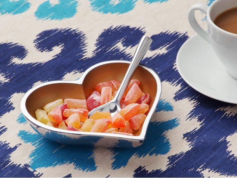 Gift your lady love her favorite accessories in the most unique way by presenting it in this Heart of Gold Dish with Velvet Bag and Note Card. Available with a heart shaped silver spoon, this pack includes a note card where you can write the message you have always wanted to say. Includes a gold dish, velvet bag, note card and heart spoon. Material: Aluminum. Size: 5.25"; Spoon: 4"
