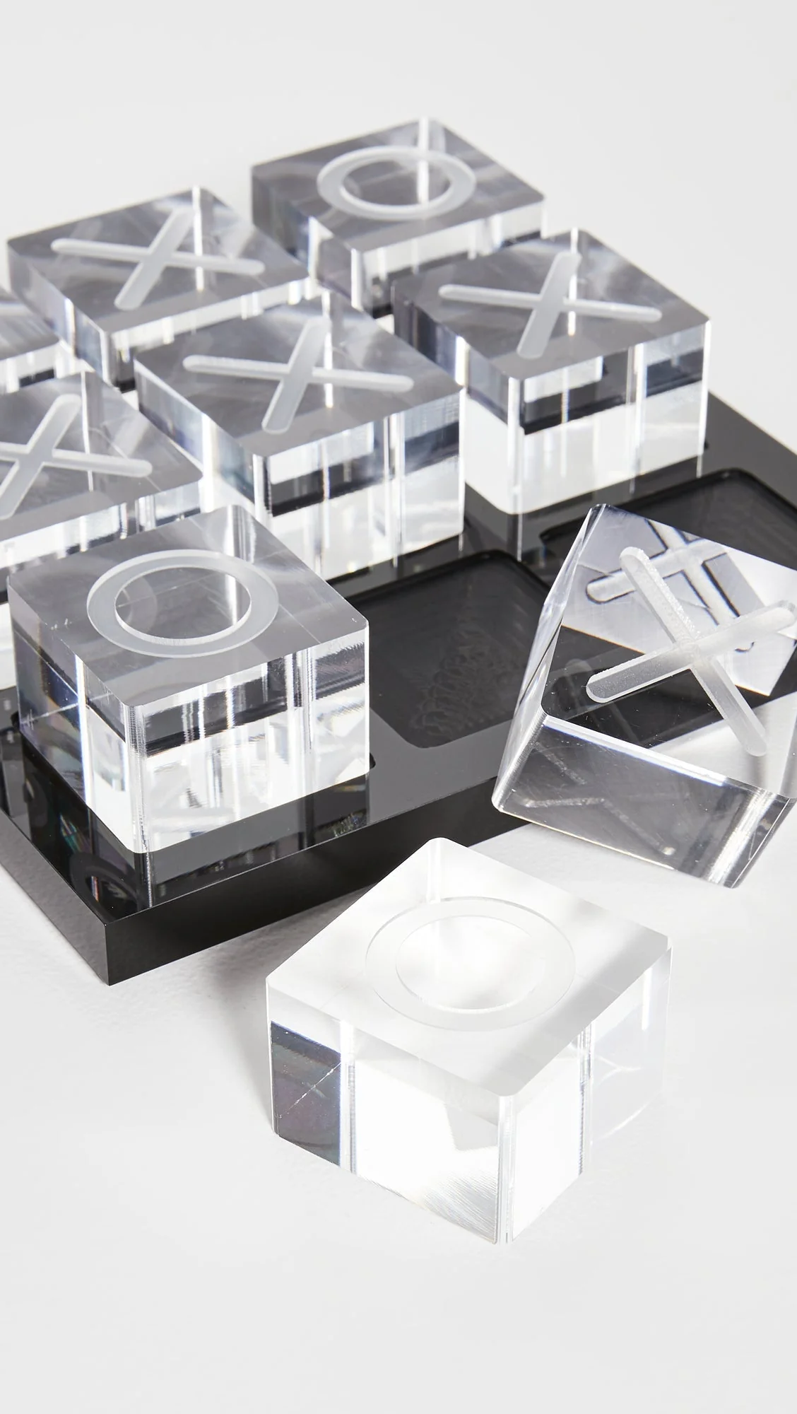 - Set includes nine clear Lucite Tic Tac Toe pieces, one black Lucite tray